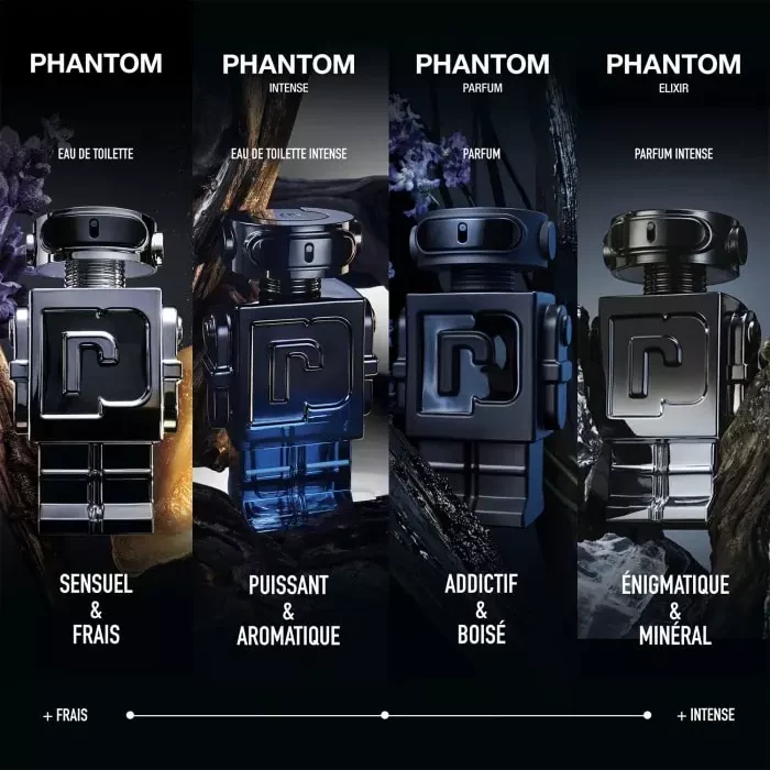 Inspirés par les facettes mystérieuses de la féminité et de la masculinité moderne, Phantom Parfum de Rabanne élève l’expérience du parfum au rang d’Art. Chacun des ingrédients exceptionnels, travaillé avec raffinement sublime votre sillage magnétique et révèle une sensualité innée.